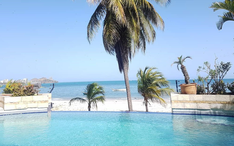 Beach View Palace tiene una pequeña y cristalina piscina, terraza con vista a la hermosa bahía de Porlamar, a pocos metros de las olas.